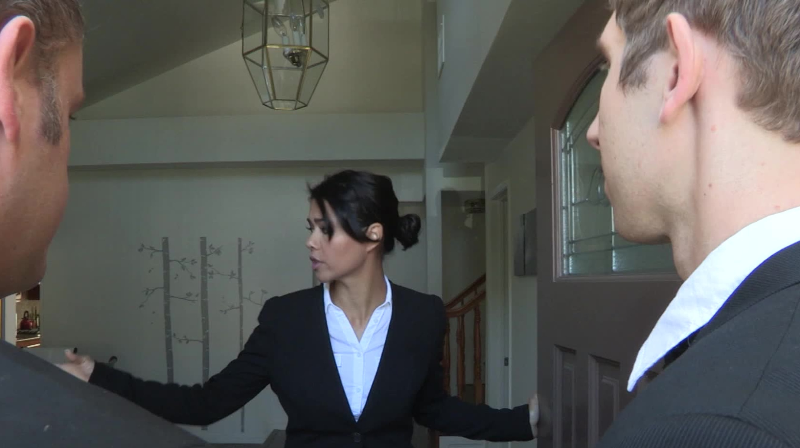 Tattooed babe Dana Vespoli is getting ready for work. She is wearing corporate attire. Dana is using the phone when someone knocks at the door. She hangs up and goes to the door to open it up. There are two religious men, Marc Anthony and Prince Yahshua outside the door. They want to invite her to their religion. However, Dana admits that she is an atheist so they shouldn’t waste their time changing her beliefs. After hearing that Dana is a non-believer, the two guys are ready to change her mind. They force her inside the house and make her kneel. They stand beside her with their big black cocks pointed at her face. Dana strokes the cocks at the same time while sucking them alternately. She continues to please their dick before Prince bends her down on the sofa. Prince shoves his hard BBC into her tight asshole while Marc sticks his cock into her tiny mouth. Her ass and mouth are being pounded by big black cocks. Dana gags every time she tries to fit his whole cock into her mouth. The guys change their position. Marc fucks her in the ass while Prince bangs her tiny mouth. Dana moans loudly as the two men continue to destroy her asshole and mouth. The threesome is only getting started. Dana licks her love juice off their cocks. The two guys keep on fucking her. They take turns banging her tight asshole and tiny mouth. Dana can feel her anal cavity getting destroyed by a BBC. They keep on fucking each other, constantly changing their positions. Dana’s tight asshole gapes widely every time they change their position. Marc and Prince keep punishing her mouth and ass until they feel like they are about to cum. They shower her pretty face with their sticky cum. They successfully converted Dana to their religion.